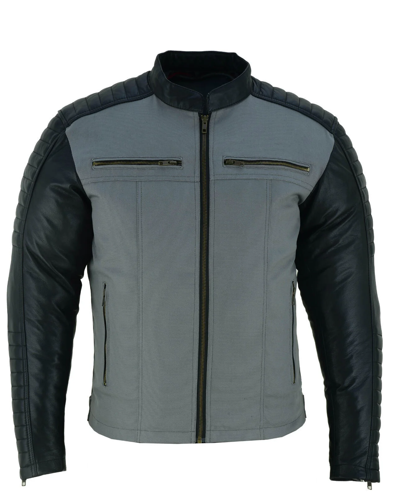 Bikers Gear Australia Mens Canvas Duo Urban Leather Motorcycle Jacket